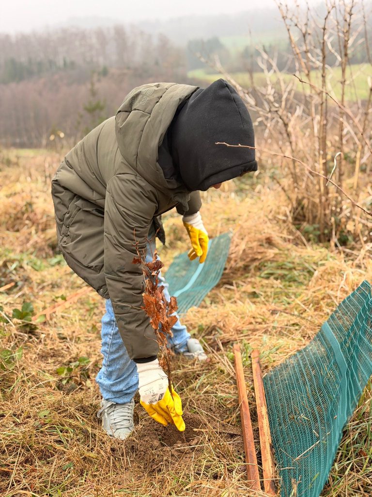 Heute haben wir im Rahmen einer Baumpflanzaktion 140 Setzlinge eingepflanzt.