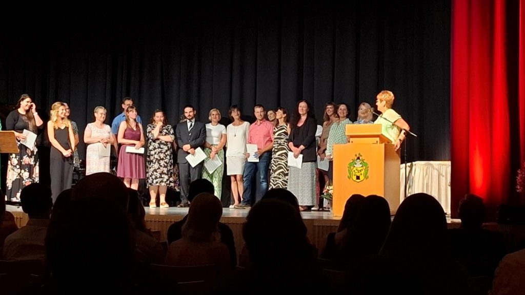 Hallo, mein Name ist Saphira, ich bin 16 Jahre alt und ich habe am 18.06.24 meine 10. Klasse abgeschlossen. Dazu fand eine Feier in der Stadthalle statt, bei der die Zeugnisse der 9. und 10. Klassen von den Lehrern und der Direktorin übergeben wurden. Dazu gab es auch ein buntes Programm mit Musik von der Schülerband der WSS, verschiedene Reden und Vorträge.
