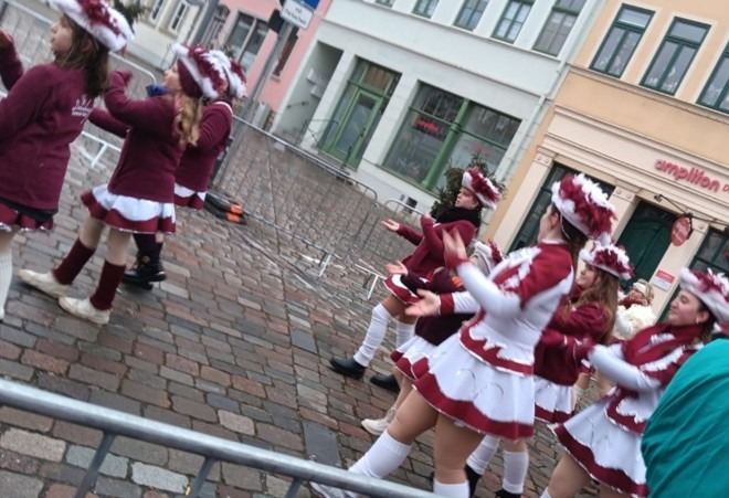 Nach dem Essen haben sich alle geschniegelt – also richtig schick gemacht – und dann ging es endlich los. Um 13:00 Uhr startete der fröhliche Faschingsumzug, und wir haben es pünktlich bis zur Sparkasse geschafft. Juhuuu!