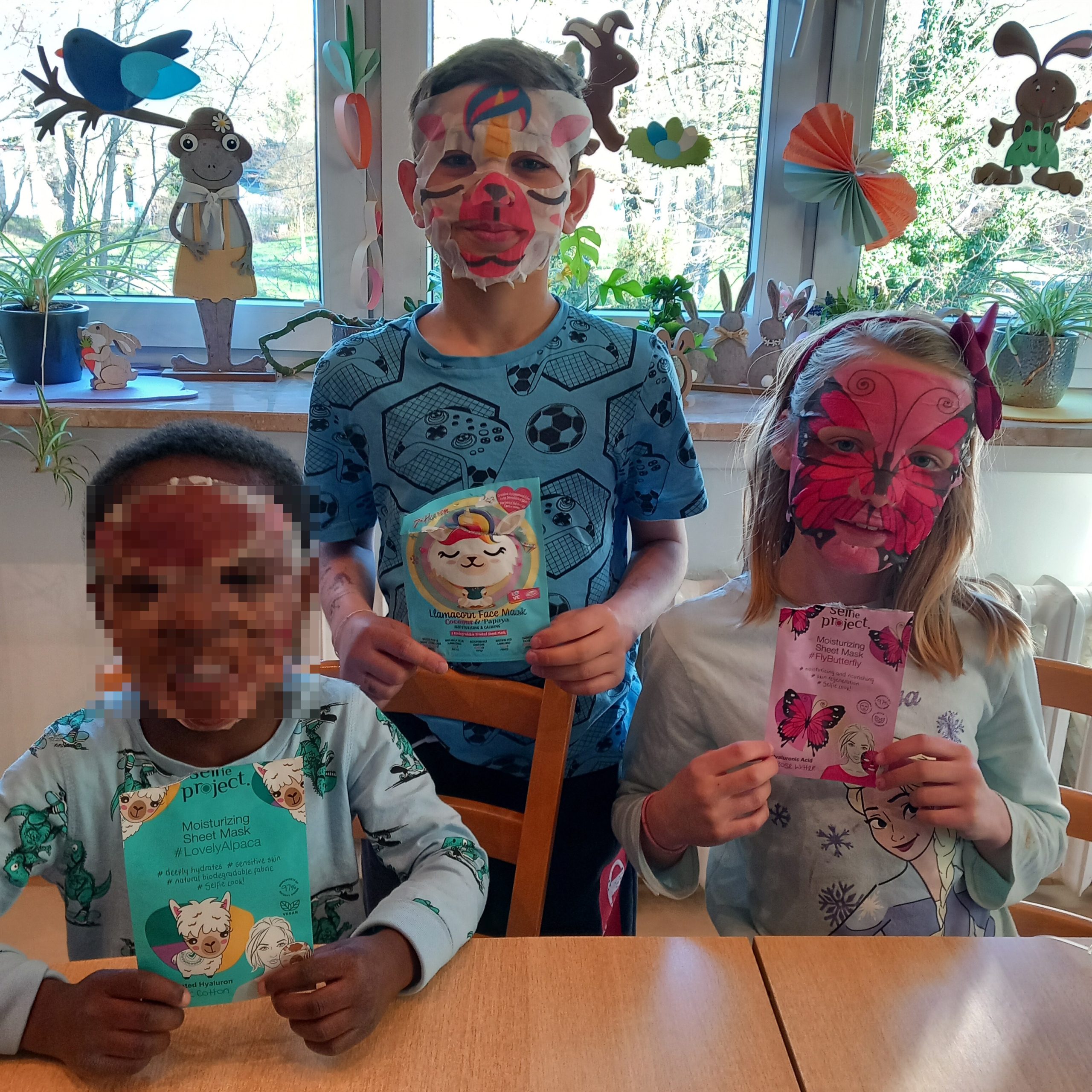 Wir haben uns gegenseitig lustige Gesichtsmasken aufgetragen – das sah manchmal ganz schön witzig aus und wir mussten viel lachen! Danach haben wir uns kleine Massagen gegeben, was total angenehm war.